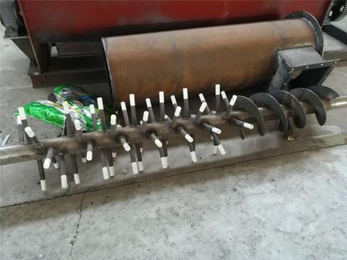 同時,還可在出料口料槽端部安裝一小段反旋向葉片,以防端部堵料。對進入粉塵加濕攪拌機的物料進行必要的清理,以防止大雜或纖維性雜質(zhì)進入機內(nèi)引起堵塞。